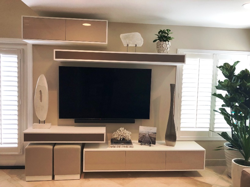 Custom-built entertainment centers designed to perfectly fit your living room layout and media setup.